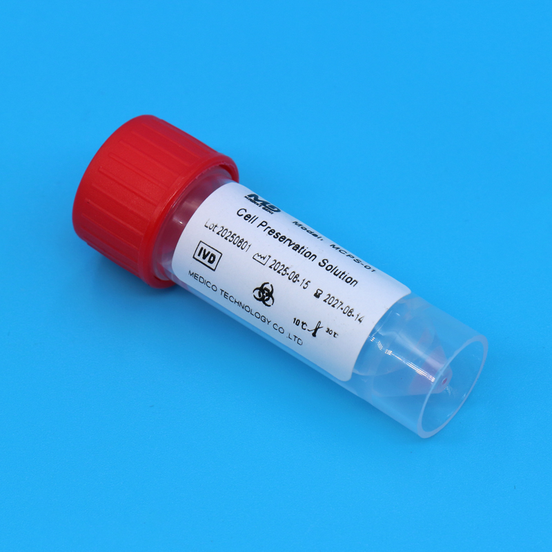 HPV Cell Preservation Solution MCPS-01, composed of Potassium Chloride, Potassium Dihydrogen Phosphate, Disodium Hydrogen Phosphate, Sodium Chloride, Tween-20, Glacial Acetic Acid, and EDTA, is designed for preserving cervical exfoliated cells and secretion samples. It optimally maintains cellular morphology integrity and is primarily used for Human Papillomavirus (HPV) testing and cervical cancer-related lesion screening. Its main application scenarios include hospitals, CDCs (Centers for Disease Control and Prevention) and medical technology companies.